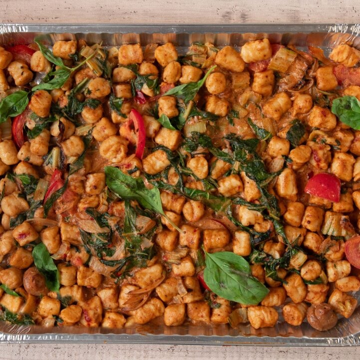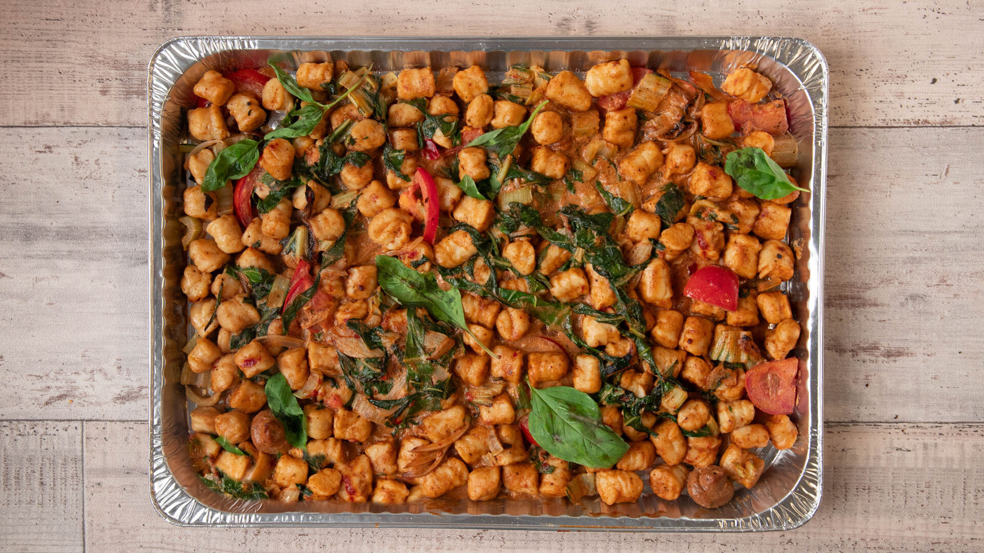 פסטה ניוקי בתוספת שום עלי מנגולד ובזיליקום