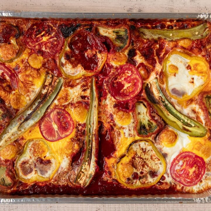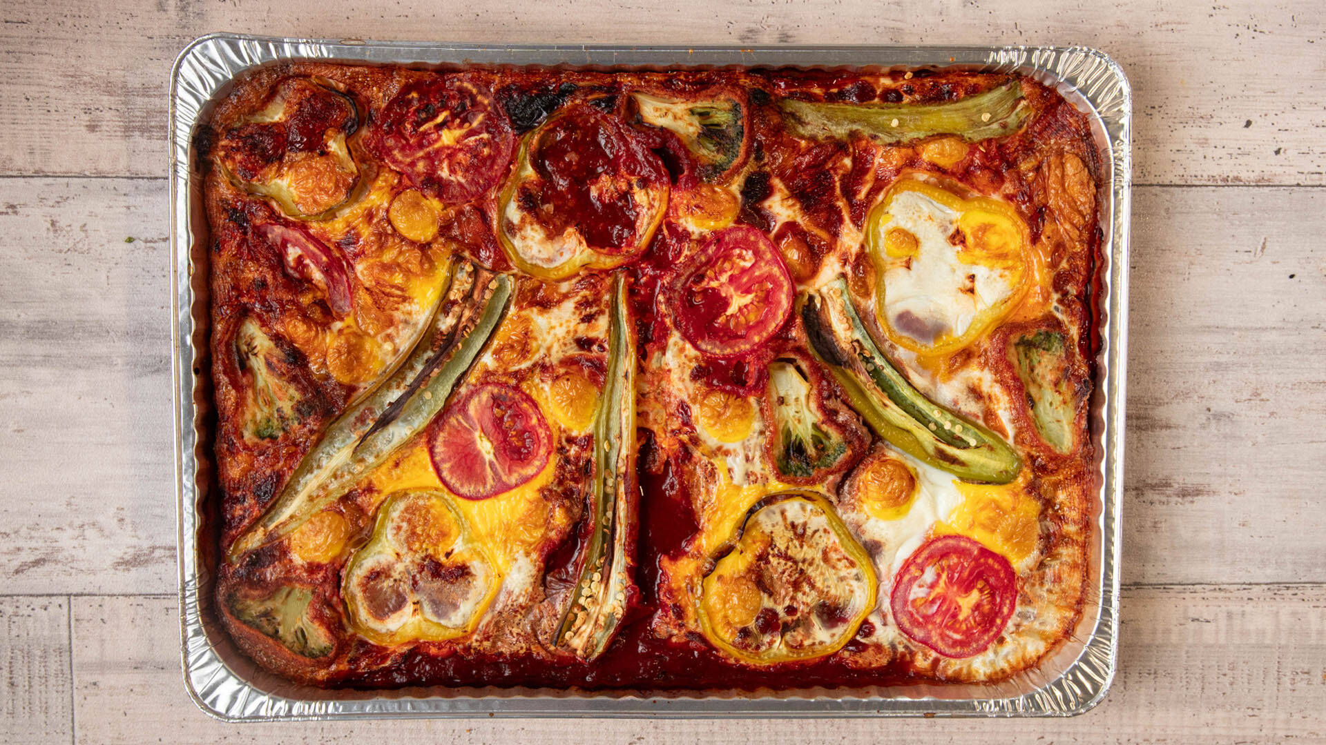 שקשוקת הבית בתוספת פלפלים ברוקלי וכדורי מוצרלה